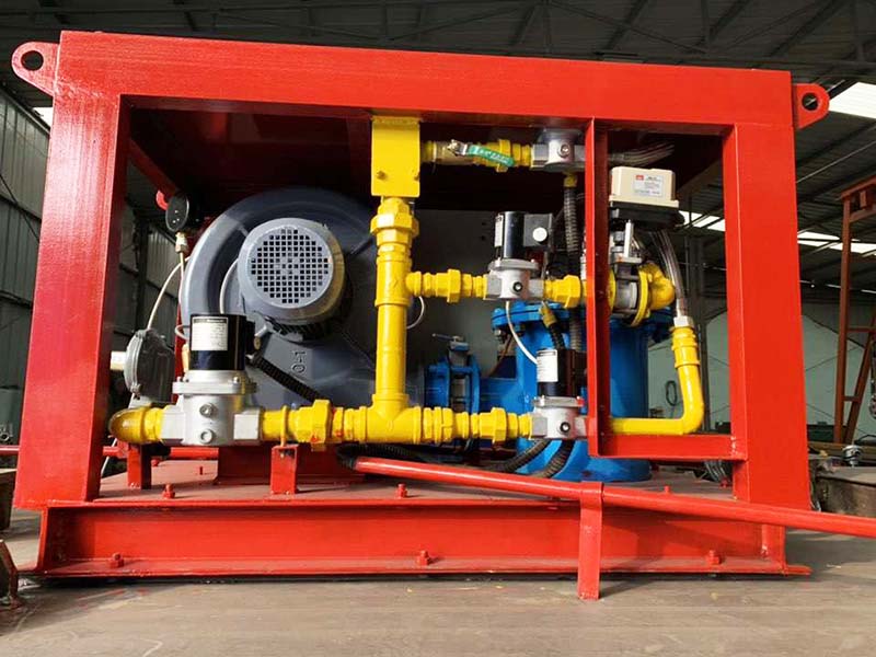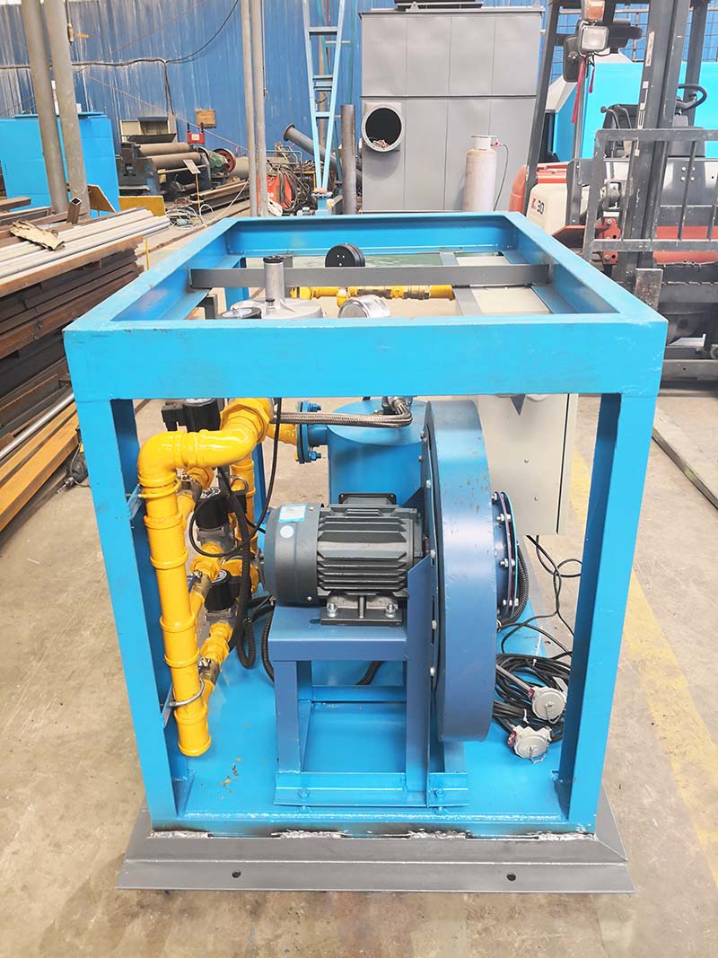 中間包烘烤器:包括燃燒器、鼓風機、助燃風管道系統(tǒng)和煤氣管道系統(tǒng),所述助燃風管道系統(tǒng)一端連接鼓風機,另一端接入位于燃燒器前的煤氣管道系統(tǒng),還包括通過控制煤氣管道閥門開閉自動調(diào)節(jié)溫度的控制系統(tǒng),所述燃燒器為1-5個(根據(jù)膜胎尺寸確定),中間包工作層受熱均勻,易脫模節(jié)能效果明顯。